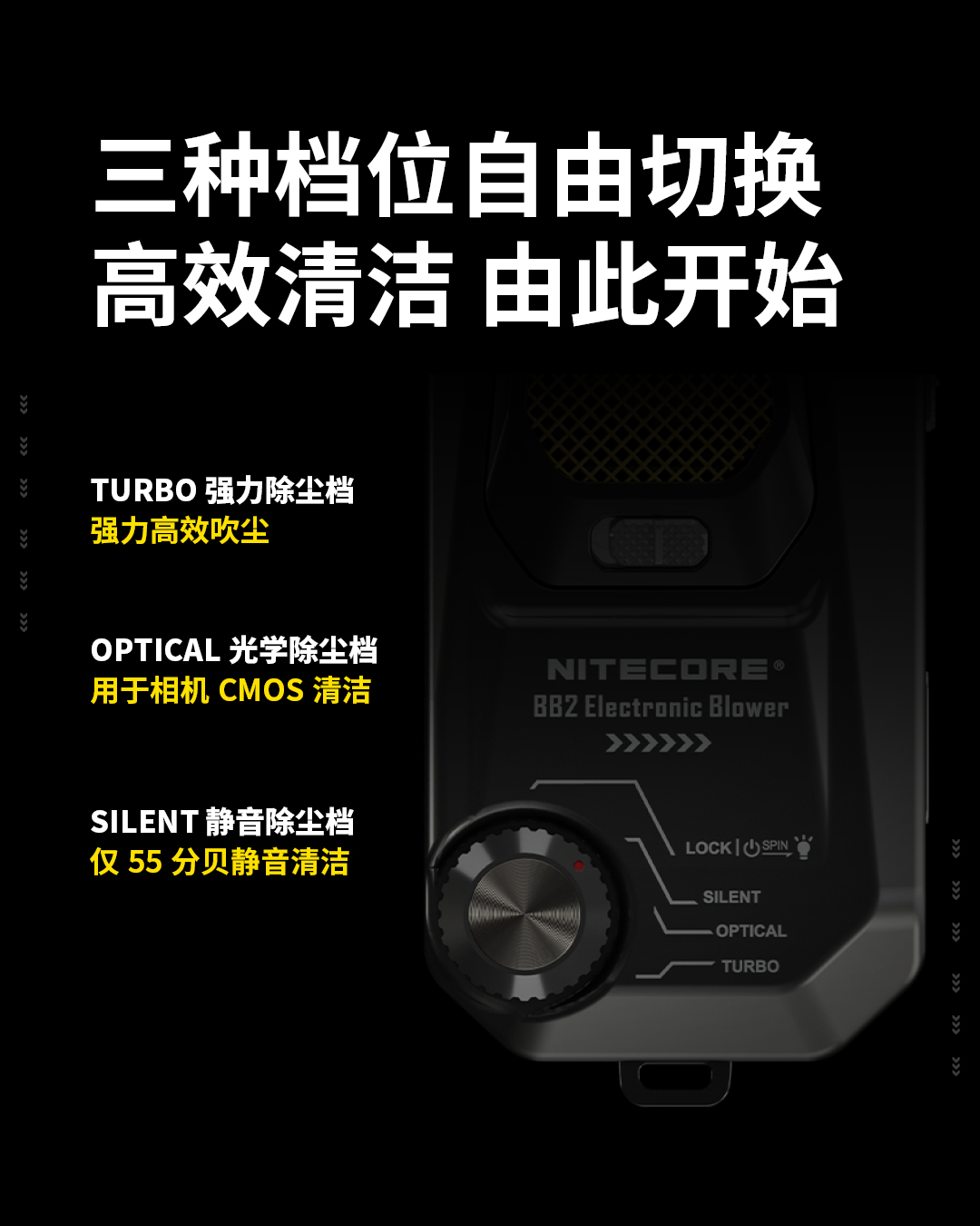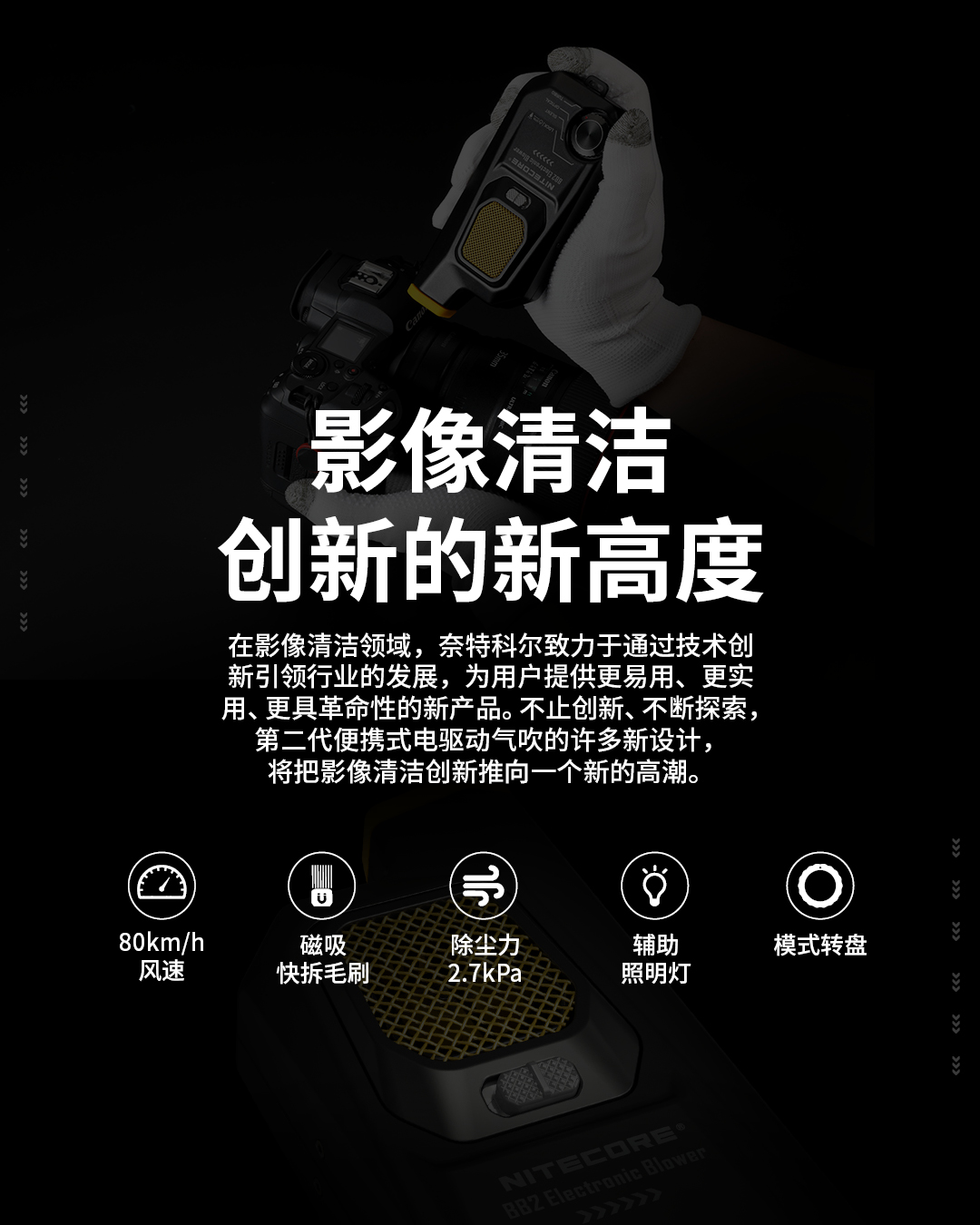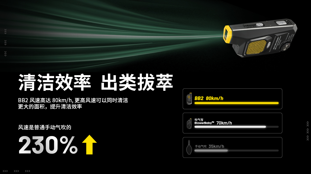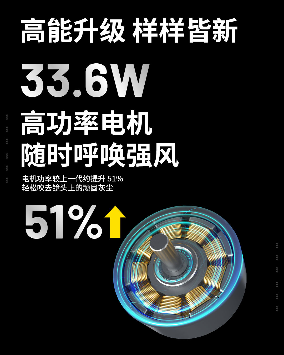 奈特科尔BB2吹气宝,搭载33.6W高功率电机、流体动力学风道与42毫米一体化叶轮,除尘力高达2.7kPa,风速提升至80km/h,自带辅助照明灯与磁吸快拆毛刷,吹、照、扫三位一体。
