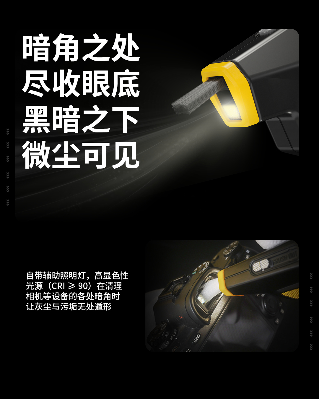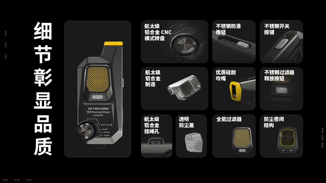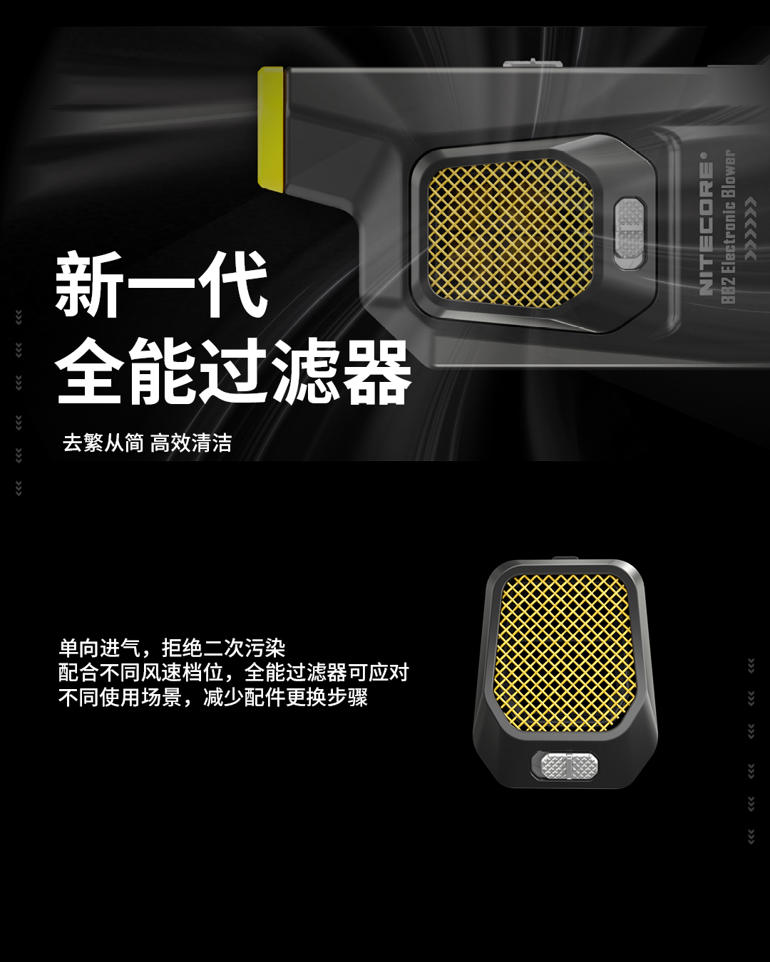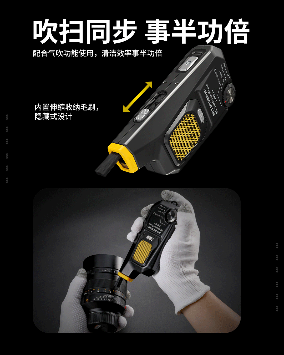 奈特科尔BB2吹气宝,搭载33.6W高功率电机、流体动力学风道与42毫米一体化叶轮,除尘力高达2.7kPa,风速提升至80km/h,自带辅助照明灯与磁吸快拆毛刷,吹、照、扫三位一体。