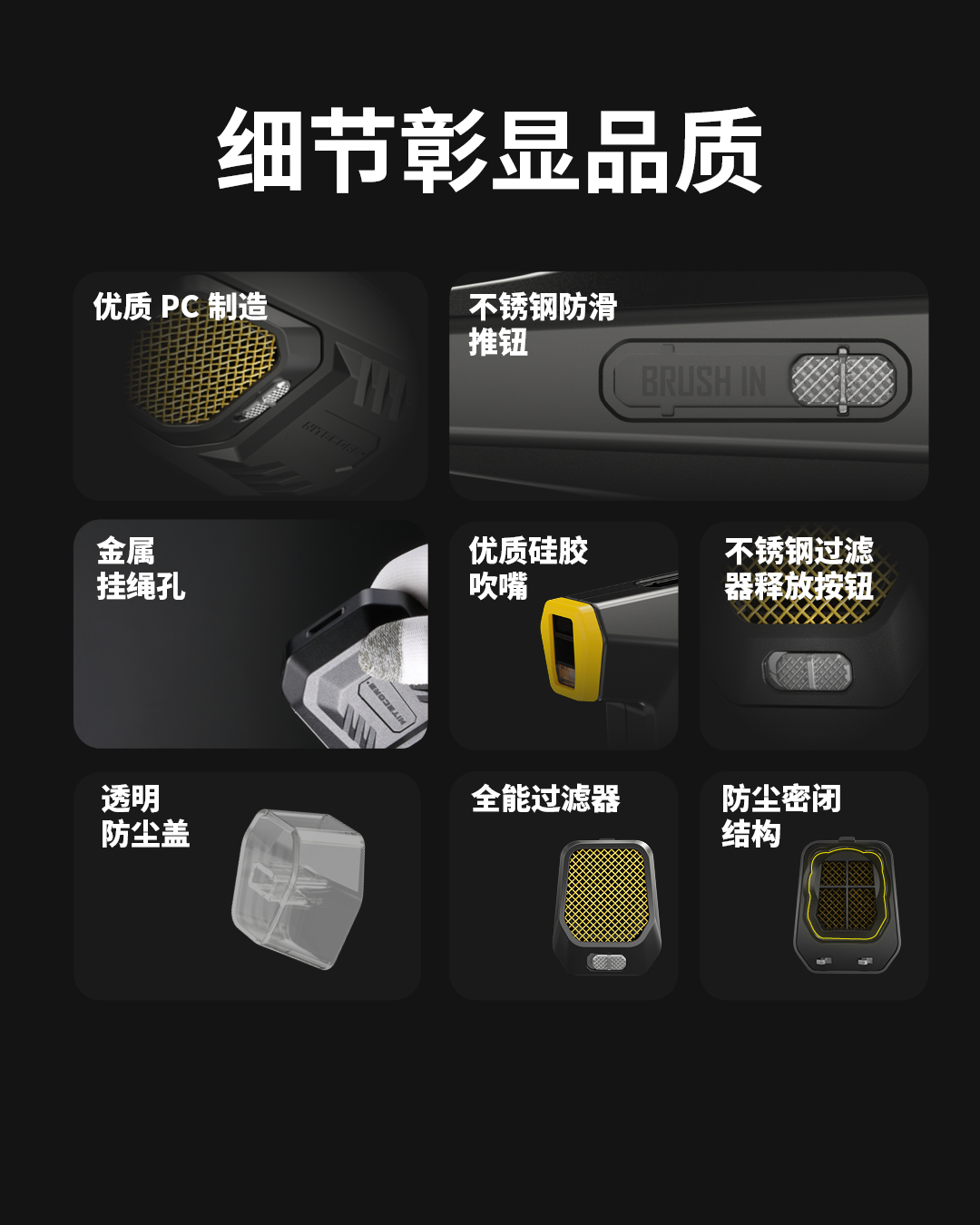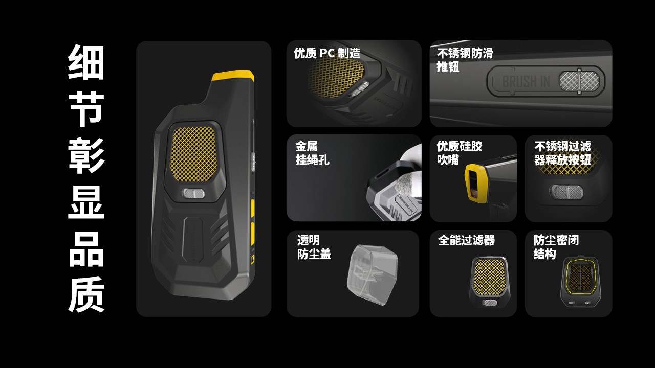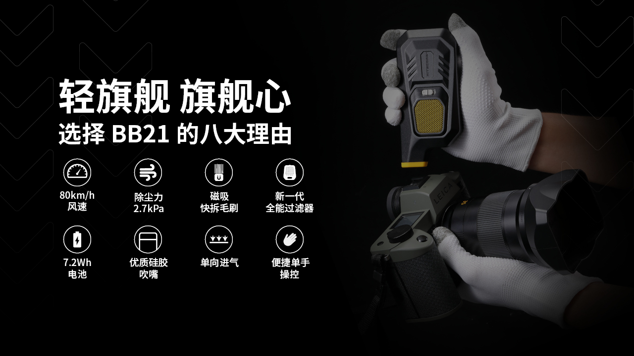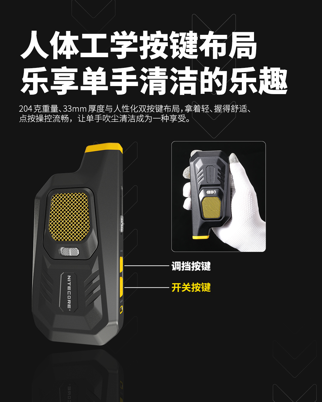 奈特科尔BB21吹气宝,搭载33.6W高功率电机、流体动力学风道与42毫米一体化叶轮,2.7kPa除尘力、80km/h风速输出,人体工学按键布局,乐享单手清洁的乐趣。