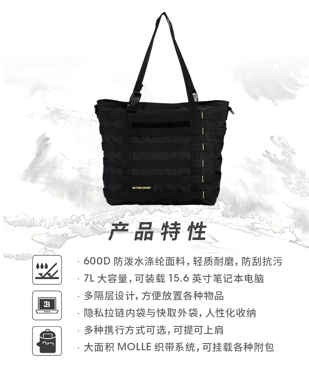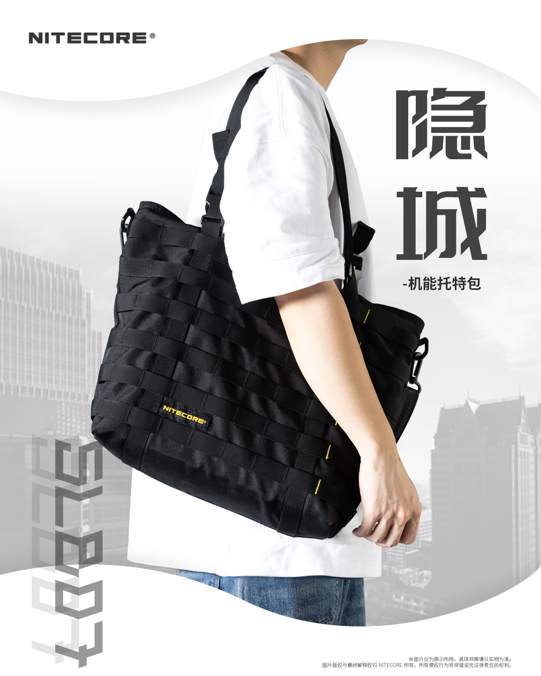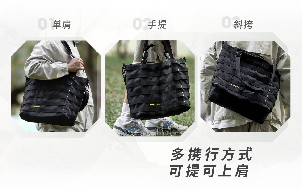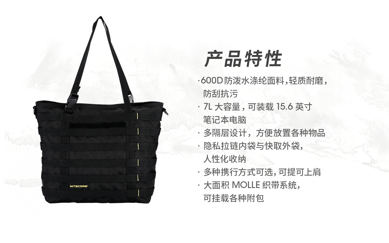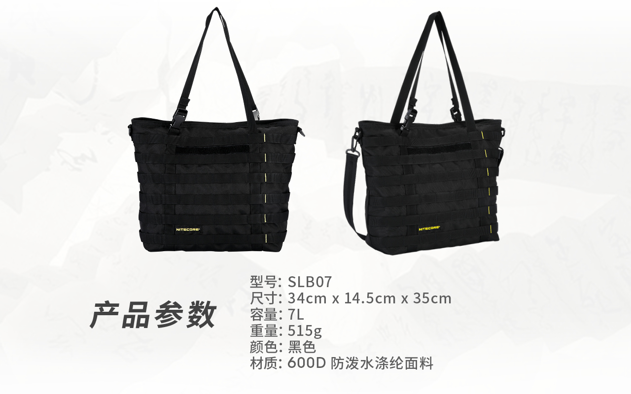 奈特科尔SLB07隐城机能托特包,600D防泼水涤纶面料制造,7升大容量满足日常通勤所需,多种携行方式,可提可上肩,搭载MOLLE系统,拓展能力出众。