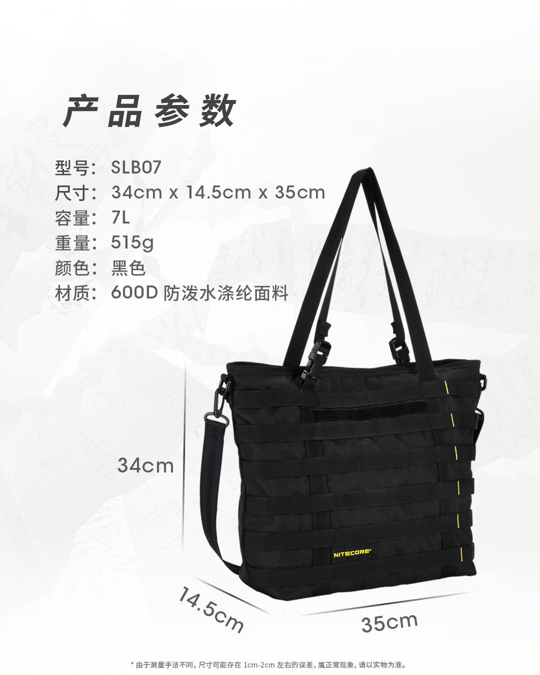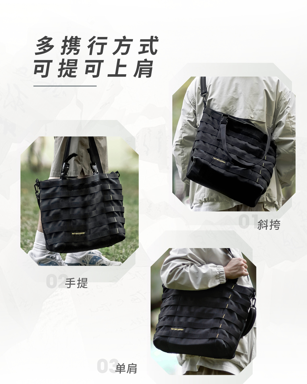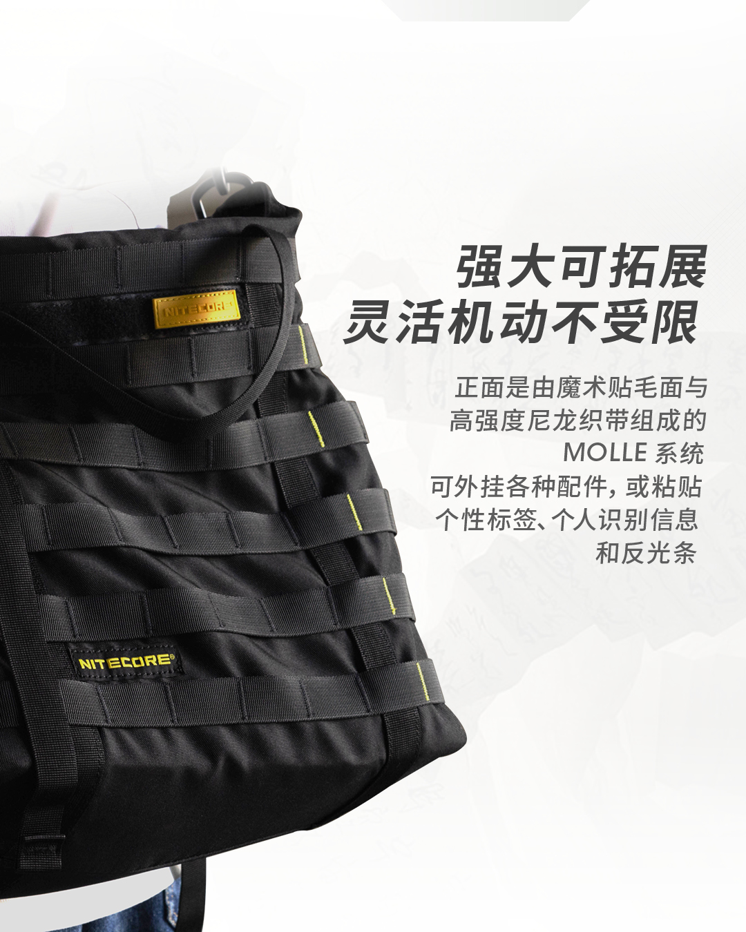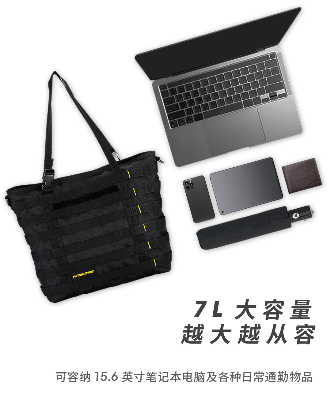 奈特科尔SLB07隐城机能托特包,600D防泼水涤纶面料制造,7升大容量满足日常通勤所需,多种携行方式,可提可上肩,搭载MOLLE系统,拓展能力出众。